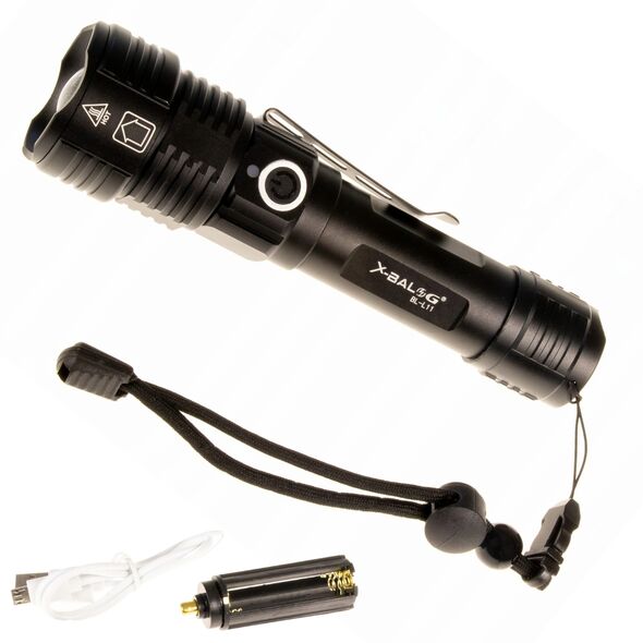 Επαναφορτιζόμενος φακός LED CREE Q5 με 4 χρώματα φωτισμού, ρυθμιζόμενη εστίαση (zoom) και εμβέλεια έως 200m. Ανθεκτικός, με σώμα από αλουμίνιο αεροπορικού τύπου και αντιολισθητική επιφάνεια. Ιδανικός για outdoor δραστηριότητες και επαγγελματική χρήση.