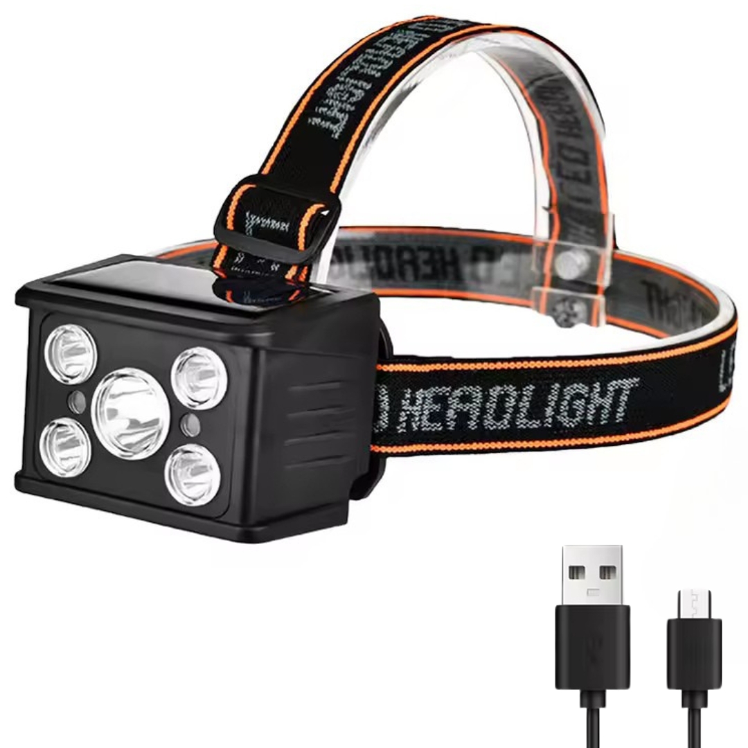 Αδιάβροχος Επαναφορτιζόμενος Φακός Κεφαλής LED με Ηλιακή Φόρτιση & USB Type-C