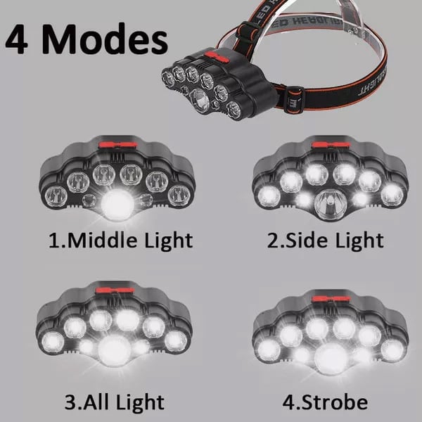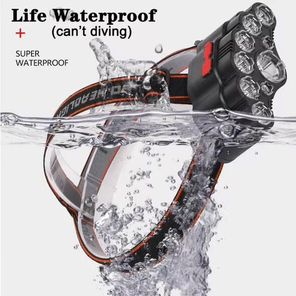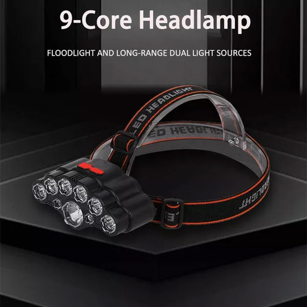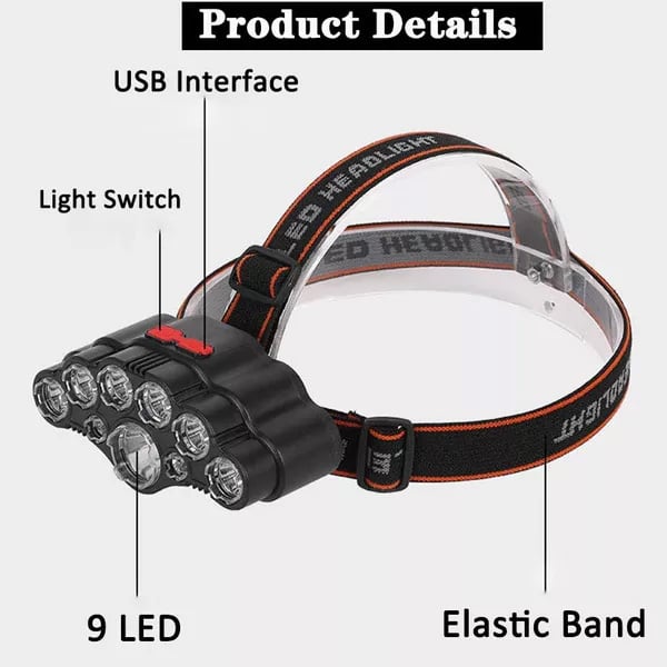 Αδιάβροχος Επαναφορτιζόμενος Φακός Κεφαλής με 9 LED - Δέσμη 230° έως 150m - 4 Λειτουργίες Φωτισμού & Ρυθμιζόμενη Κλίση - LED Super Bright Headlamp