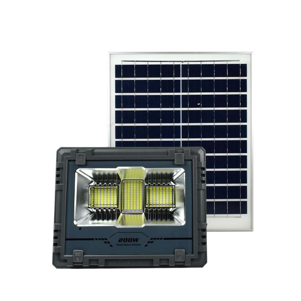 Αδιάβροχος Επαναφορτιζόμενος Ηλιακός Προβολέας Αλουμινίου 200W 208 LED με Τηλεχειρισμό & Χρονοδιακόπτη
