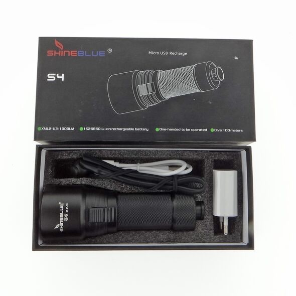 Ο SHINEBLUE S4 είναι ένας υποβρύχιος, LED φακός που λειτουργεί με 1 επαναφορτιζόμενη μπαταρία Li-ion 22650.