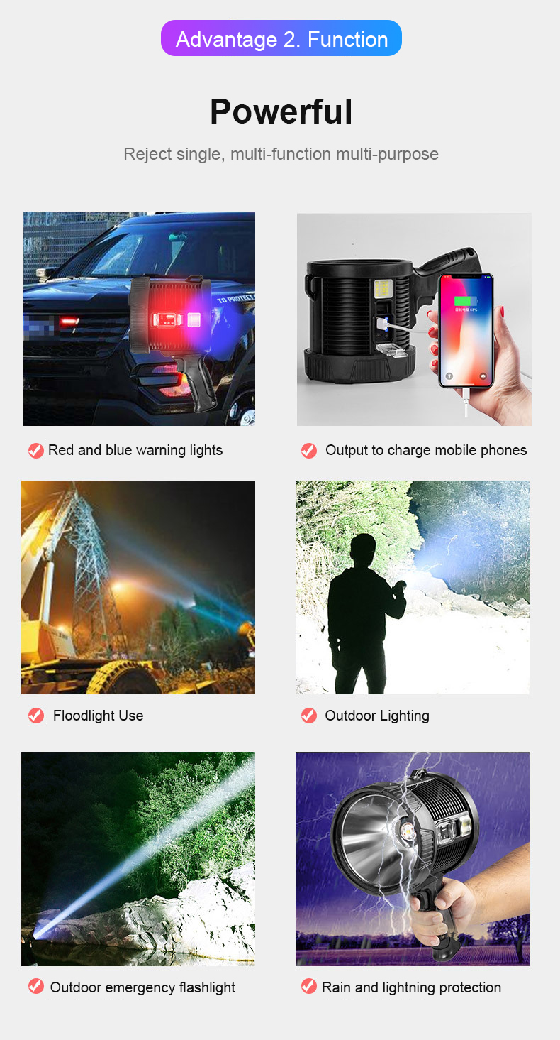 Αδιάβροχος Φορητός Ηλιακός Προβολέας LED Χειρός με 3 Χρώματα Έκτακτης Ανάγκης Υψηλής Απόδοσης Power Bank Επαναφορτιζόμενος USB