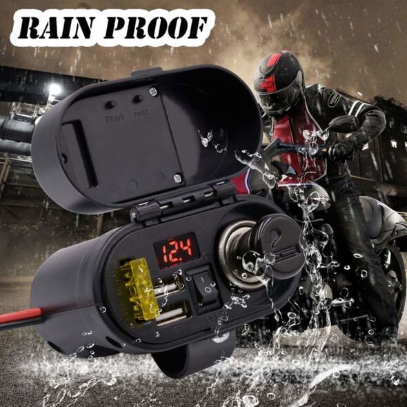 Αδιάβροχος φορτιστής πολλαπλών λειτουργιών με αναπτήρα αυτοκινήτου, 2 θύρες USB, ηλεκτρονικό ρολόι και βολτόμετρο για να έχετε όλα τα απαραίτητα πάνω στη μηχανή σας!