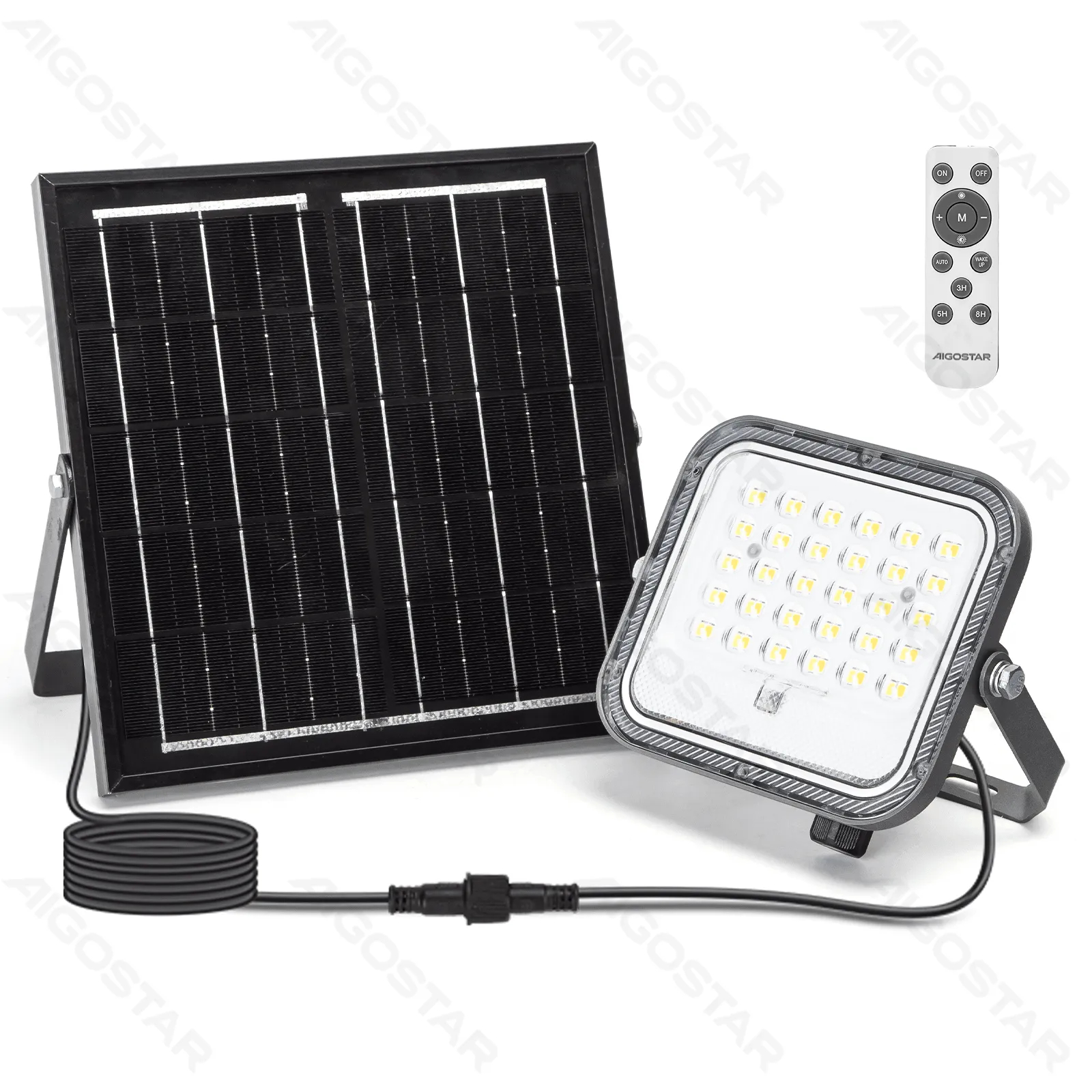 Αδιάβροχος Ηλιακός Προβολέας 50W με Πάνελ & Τηλεχειριστήριο 3 Επιπέδων Φωτισμού 153 x 141 x 38mm Aigostar