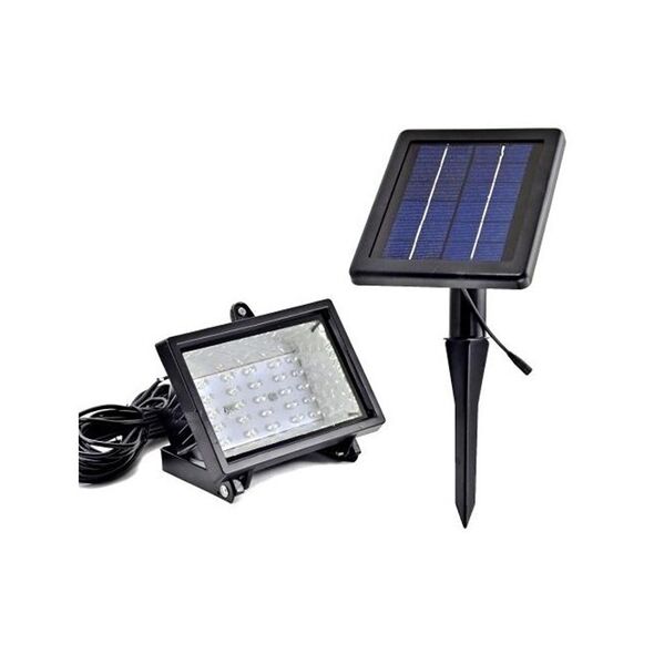 Ο προβολέας και ο φωτοβολταϊκός του συλλέκτης συνδέονται μεταξύ τους με καλώδιο μήκους 5 μέτρων. Μαζί με το προϊόν παρέχονται και εξαρτήματα για να το τοποθετήσετε στον τοίχο ή στο έδαφος.
