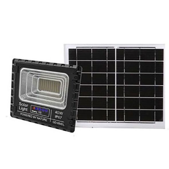 Αδιάβροχος Ηλιακός Προβολέας Αλουμινίου 40W GD-8840L με Φωτοβολταϊκό Πάνελ, Τηλεκοντρόλ και Χρονοδιακόπτη - Solar Panel