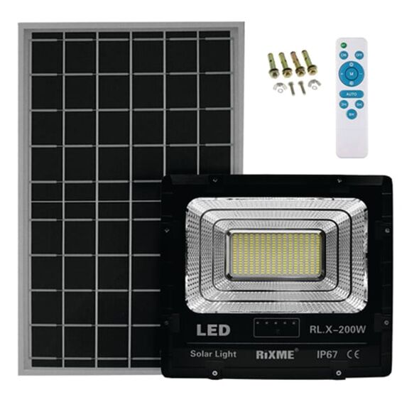 Αδιάβροχος Ηλιακός Προβολέας LED με Πάνελ, Βάσεις Τοποθέτησης και Τηλεχειριστήριο 200W 20480LM 200W