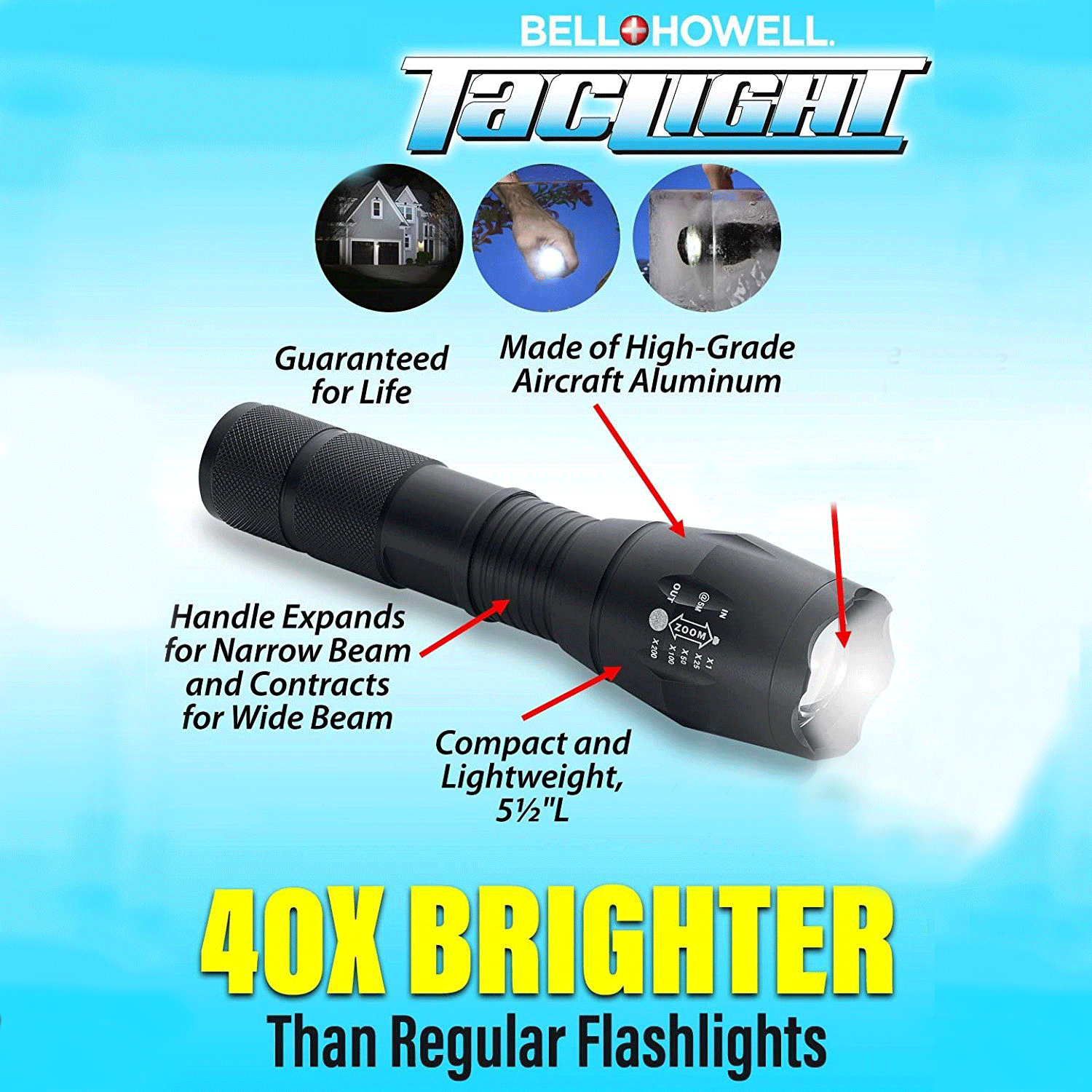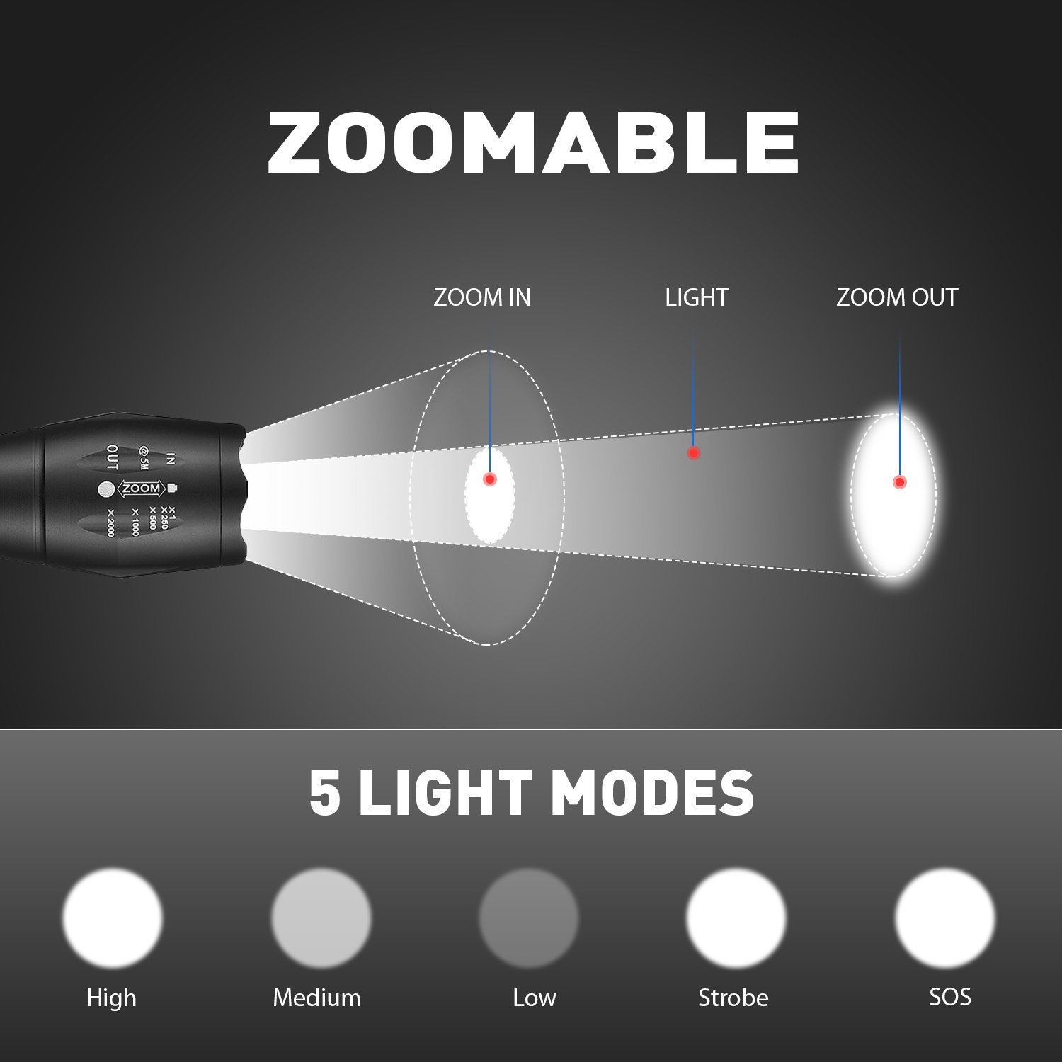 Με αυτόν τον φακό και φωτιστικό 2 σε 1 LED υψηλής φωτεινότητας, με περίβλημα Αλουμινίου αεροσκαφών (πολύ ελαφρύς!) και δυνατότητα μεταβλητής εστίασης της δέσμης του μπροστινού φακού για απίστευτο SUPER ZOOM με φακούς εστίασης έως και 200x για να φωτίσετε ακόμα πιο μακριά, η καθημερινότητα σας θα απλουστευτεί στο έπακρον.