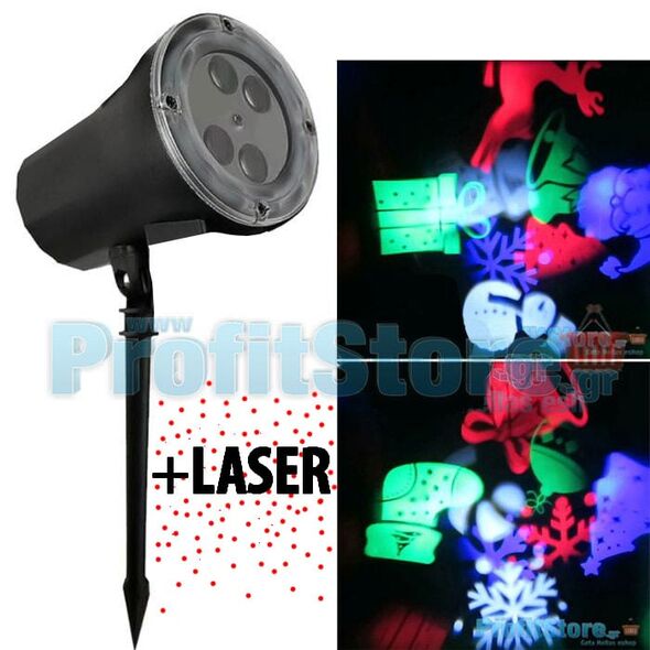 Προβάλει κόκκινο Laser και χιονονιφάδες, άγιο Βασίλη, καμπανάκια, χριστουγεννιάτικο δέντρο, μπάλες, στολίδια, κάλτσες δώρων, δώρα και άλλα πολλά! (δείτε το βίντεο παρακάτω)