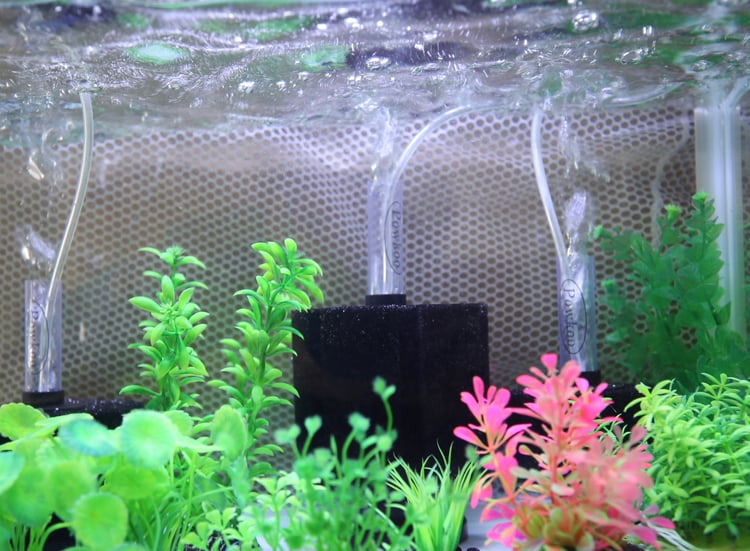 Οι φυσαλίδες οξυγονώνουν το νερό ενώ το σφουγγάρι επιτυγχάνει το φιλτράρισμα, μηχανικό και βιολογικό.