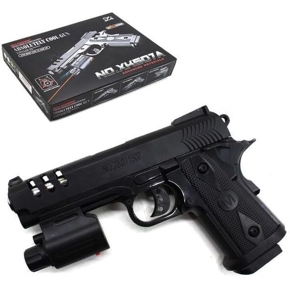 Με κομψό μαύρο χρώμα, λεπτομέρειες που θυμίζουν πραγματικό όπλο χειρός, και ενσωματωμένο λέιζερ, αποτελεί ένα εντυπωσιακό gadget που ξεχωρίζει τόσο ως παιχνίδι όσο και ως διακοσμητικό για το γραφείο ή τη συλλογή σας.