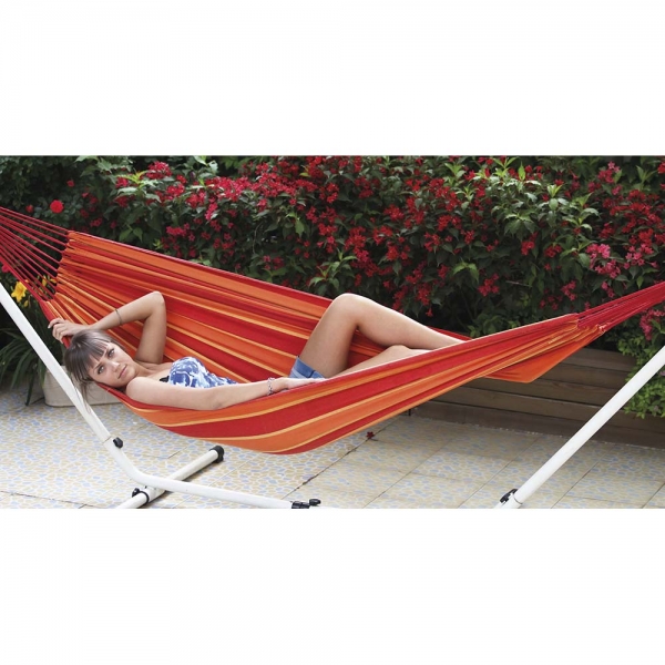 Μία υφασμάτινη αιώρα 2 ατόμων, ιδανική για χαλάρωση σε camping είτε οπουδήποτε αλλού.