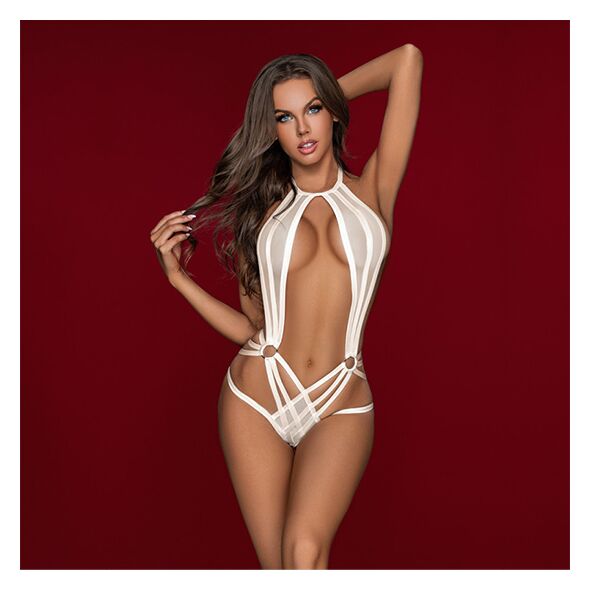 Αισθησιακό Λευκό Γυναικείο Ολόσωμο Sexy Κορμάκι με Κορδόνια & Δέσιμο στο Λαιμό One Size