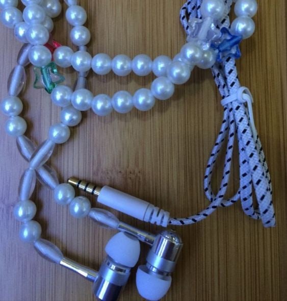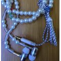 Ακουστικά hands free ψείρες που το καλώδιό τους στο μεγαλύτερο μέρος τους είναι ένα υπέροχο κολιέ από πέρλες.