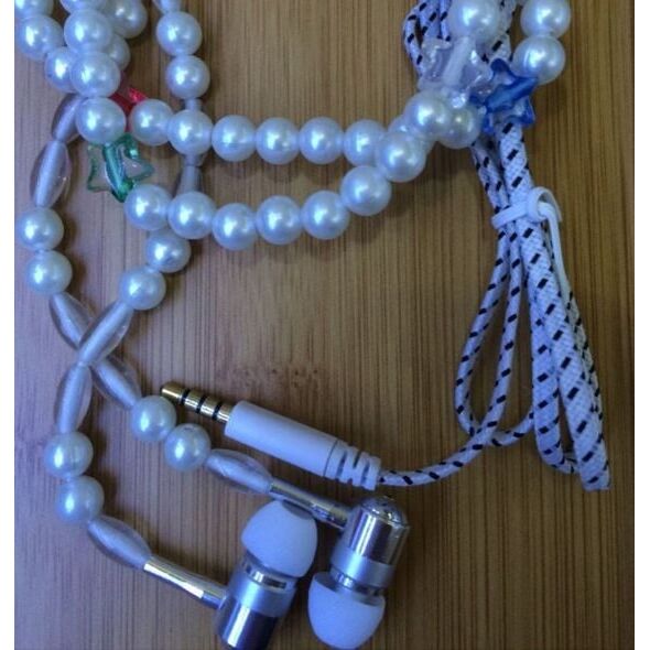 Ακουστικά hands free ψείρες που το καλώδιό τους στο μεγαλύτερο μέρος τους είναι ένα υπέροχο κολιέ από πέρλες.