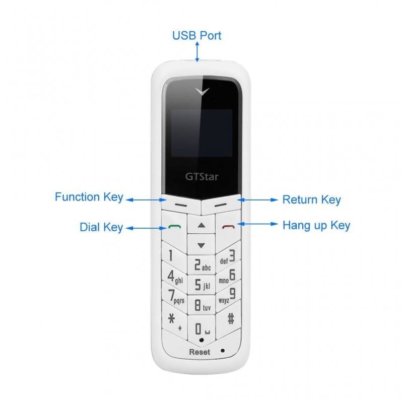 Ακουστικό Bluetooth - Κινητό Τηλέφωνο με Πληκτρολόγιο & Κάρτα Sim 2 σε 1 - Λευκό