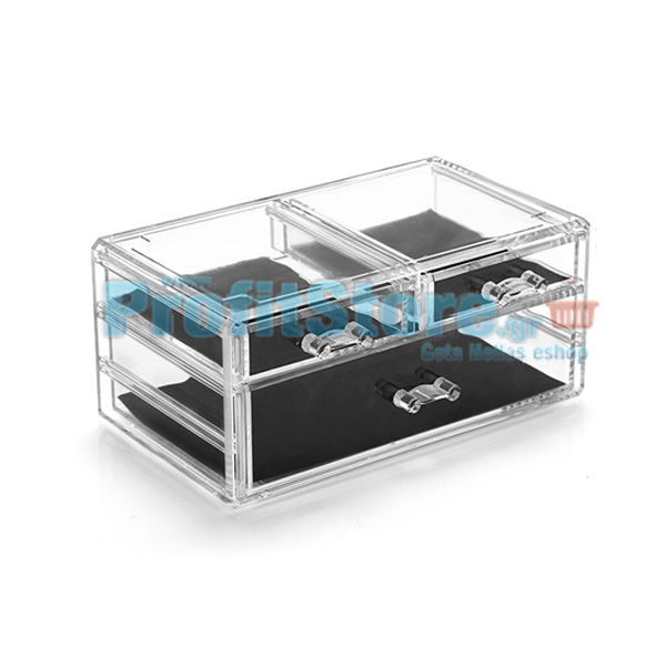 Ακρυλική Διάφανη Κοσμηματοθήκη - Μπιζουτιέρα με 3 συρτάρια για Κοσμήματα και για Καλλυντικά - Cosmetic Jewelry Organizer 17543