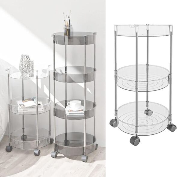 Ακρυλική Τροχήλατη - Ραφιέρα - Καρότσι - Βάση Οργάνωσης 3 Επιπέδων με Ροδάκια, Τρόλεϊ Οργάνωσης - Διακόσμησης  32x32x63,5εκ