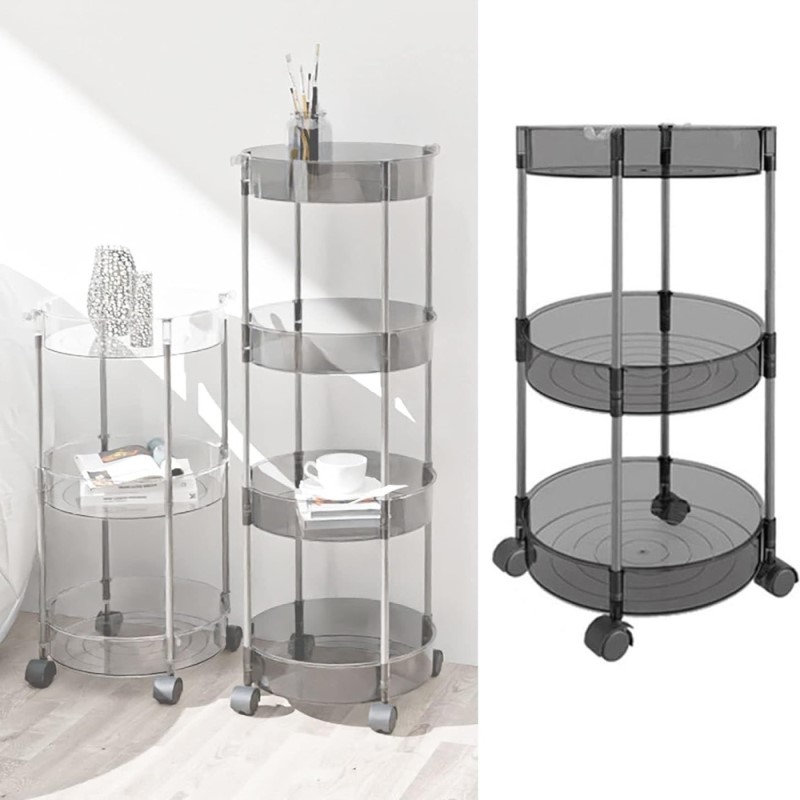Ακρυλική Τροχήλατη - Ραφιέρα - Καρότσι - Βάση Οργάνωσης 3 Επιπέδων με Ροδάκια, Τρόλεϊ Οργάνωσης - Διακόσμησης 32x32x63,5εκ - Γκρι