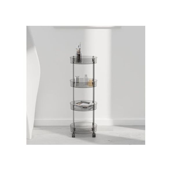 Ακρυλική Τροχήλατη - Ραφιέρα - Καρότσι - Βάση Οργάνωσης 4 Επιπέδων με Ροδάκια, Τρόλεϊ Οργάνωσης - Διακόσμησης 32x32x91εκ Γκρι
