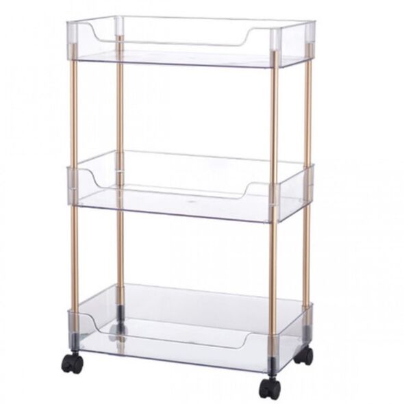 Ακρυλικό Τρόλεϊ - Ραφιέρα με Τρία Επίπεδα Μπάνιου - Κουζίνας με Ρόδες 40.5x22.5x65 cm