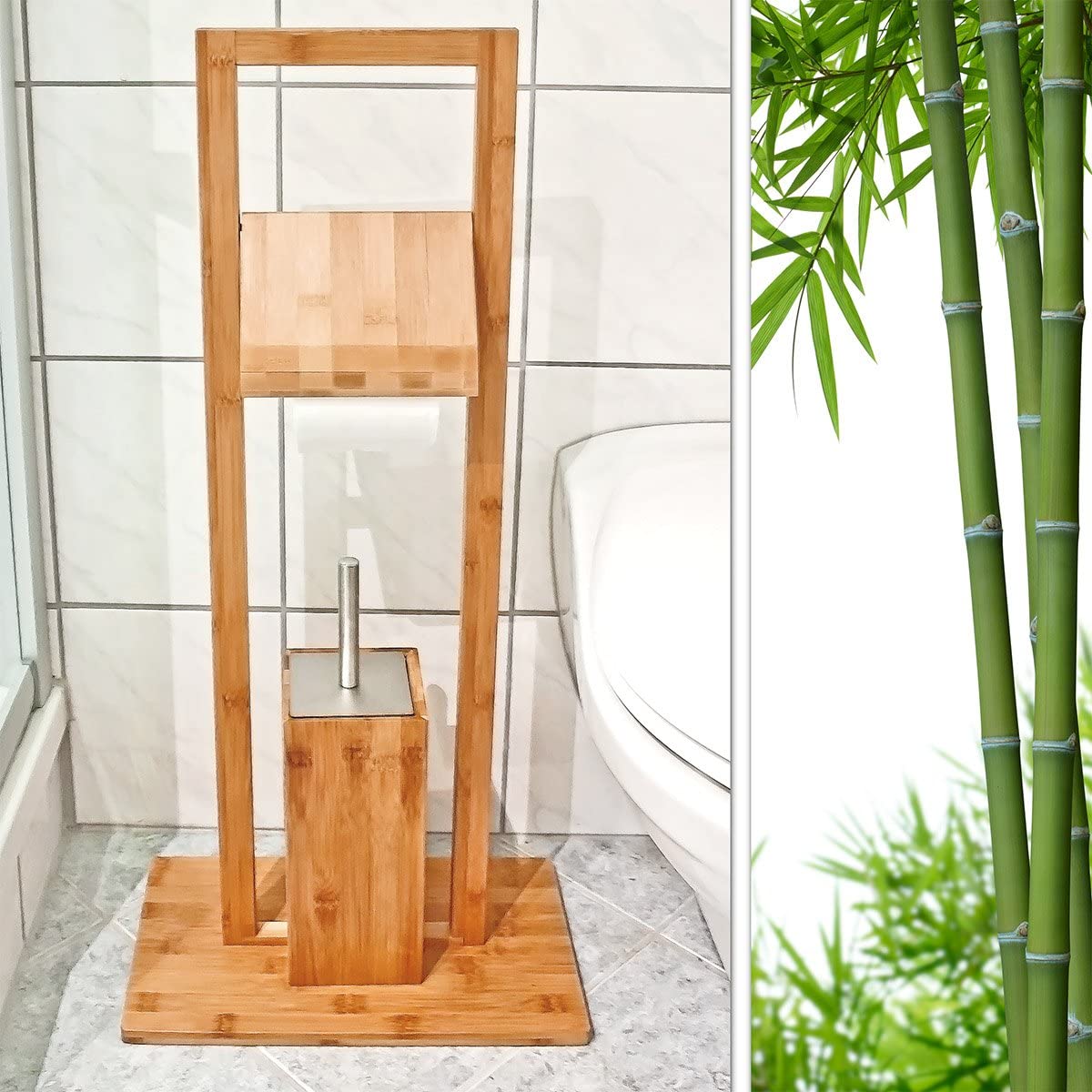 Αξεσουάρ Βάση Οργάνωσης Τουαλέτας - Μπάνιου από Μπαμπού με Βάση για Κρέμαση Χαρτιού & Πιγκάλ