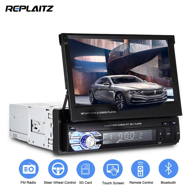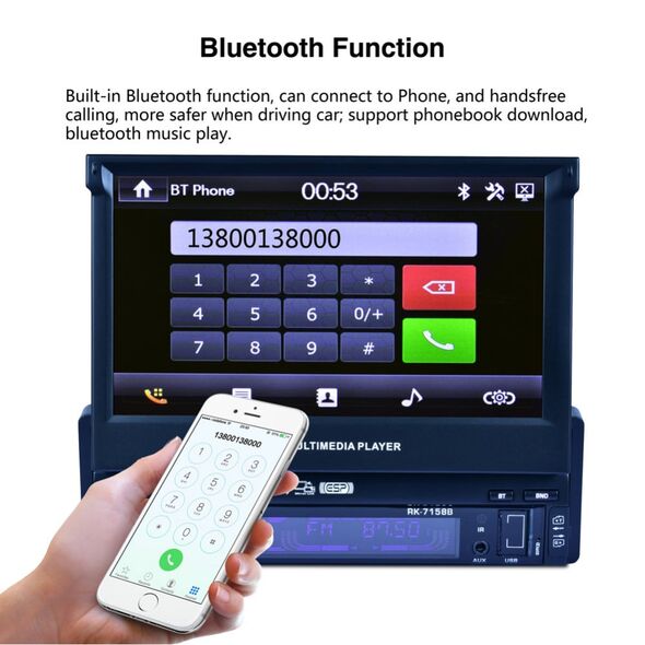 Αναδιπλούμενη Multimedia Οθόνη Αφής Αυτοκινήτου 1 DIN 7inc Bluetooth Handsfree MP4/MP3/USB/SD/AUX/MIC/TV με Τηλεχειριστήριο & Ελληνικό μενού & Θύρα για Κάμερα Οπισθοπορείας