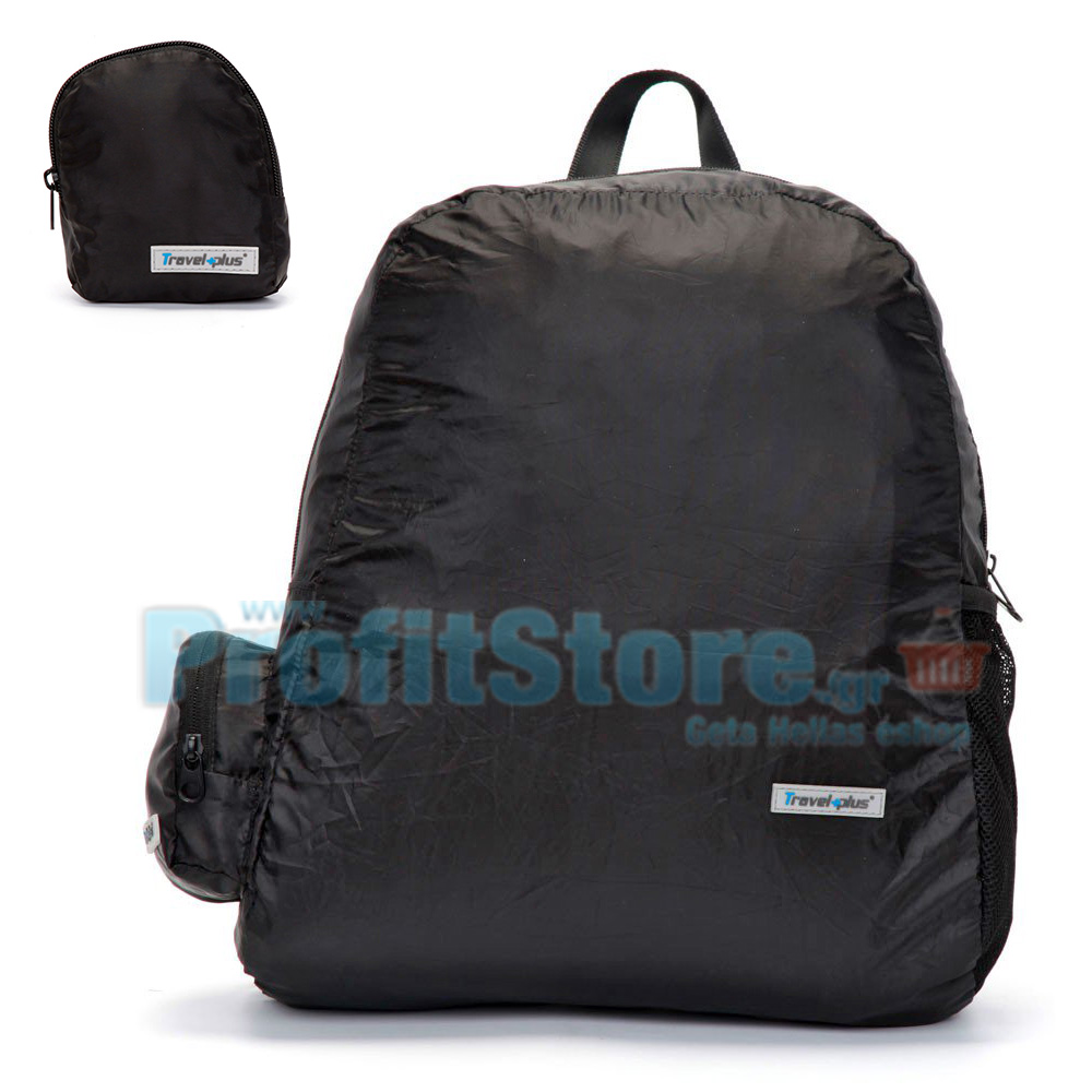 Αναδιπλούμενο Αδιάβροχο Σακίδιο Πλάτης Μαύρο για Κάμπινγκ & Ταξίδια 20L Travel Plus Folding Backpack - Χωράει στην Τσέπη σας