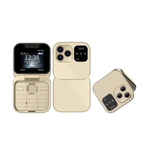 Αναδιπλούμενο Κινητό Τηλέφωνο i16 Pro με 2 Κάρτες Sim, Bluetooth & HD Camera - Χρυσό