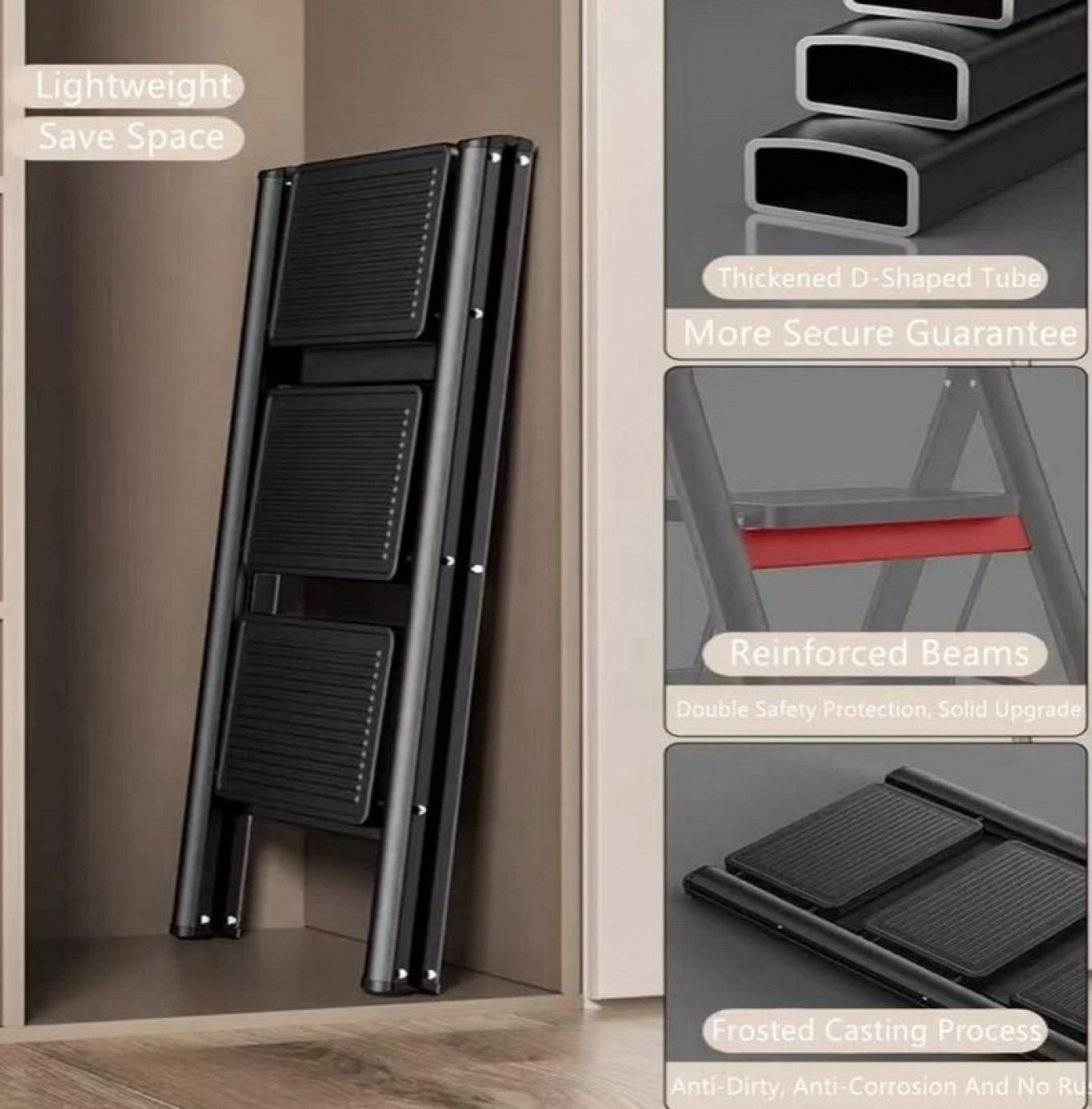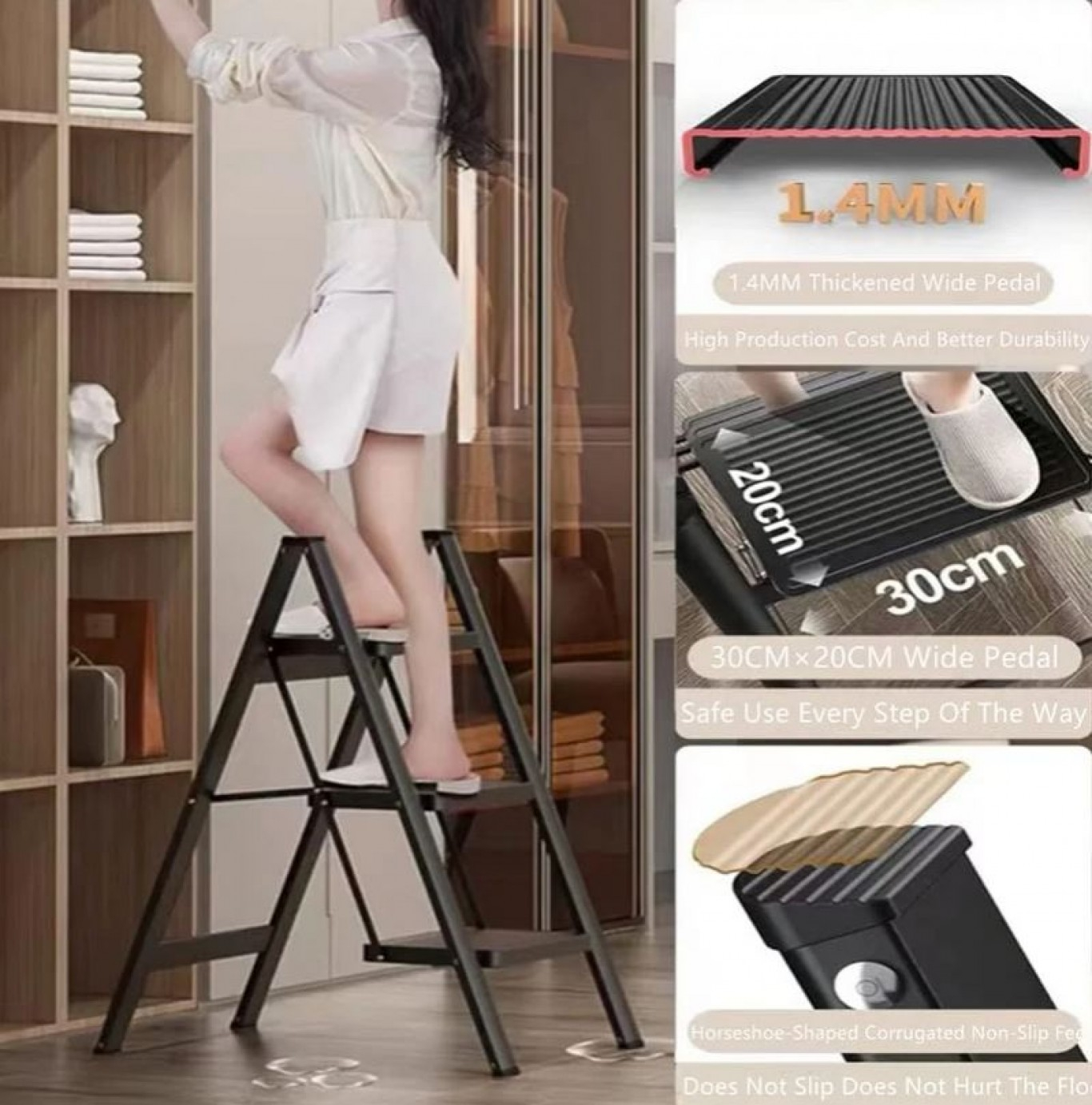 ✔️ Τα πλατιά αντιολισθητικά σκαλοπάτια (30 × 20 cm) προσφέρουν σιγουριά σε κάθε βήμα, ενώ το κομψό μαύρο χρώμα του ταιριάζει σε κάθε εσωτερικό περιβάλλον.