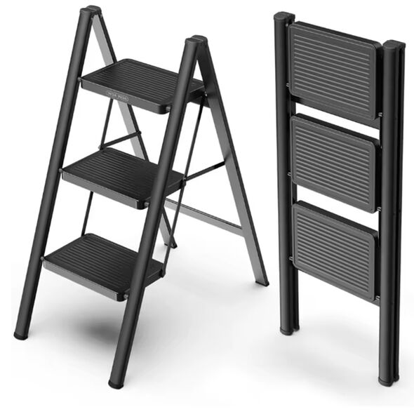 Αναδιπλούμενο Σκαλοσκαμπό Αλουμινίου με 3 Σκαλιά - Μαύρο