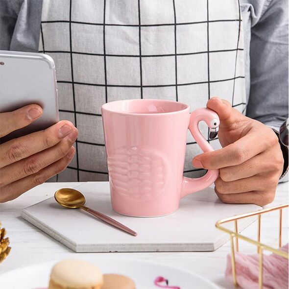 Ανάγλυφη 3D Κεραμική Κούπα Σε Σχήμα Φλαμίνγκο 400 ml, Ανθεκτική Ροζ Κούπα για Καφέ / Τσάι, OEM