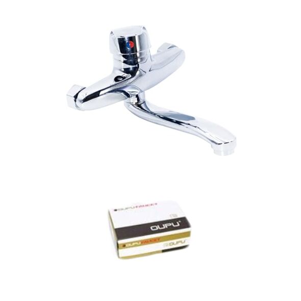 Οικονομική και εργονομική θερμοεμικτική βρύση για τον νεροχύτη επιτοίχια, τοποθετείται στον τοίχο. Με μηχανισμό για καλύτερη και περισσότερη ροή νερού.