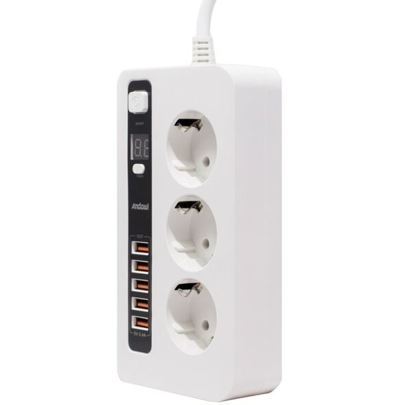 Andowl Πολύμπριζο με 3 Θέσεις Σούκο και 5 USB με Χρονοδιακόπτη - Anti-Static Power Socket