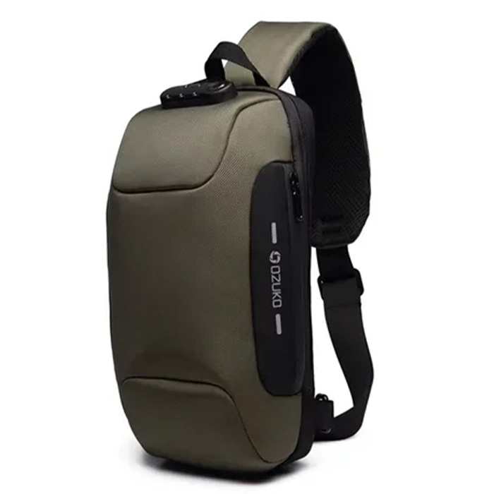 Ανδρική Τσάντα Ώμου με Ρυθμιζόμενο Ιμάντα και Φερμουάρ Ozuko Λαδί