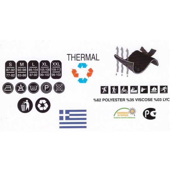 Χαρακτηριστικά του προϊόντος: Διπλό στρώμα πλεκτού υφάσματος από μικρο-πολυεστέρα. Φιλική προς το δέρμα βισκοζη που κρατά το σώμα στεγνό και την θερμοκρασία του σώματος σταθερή αποτρέποντας τις μυρωδιές του σώματος.