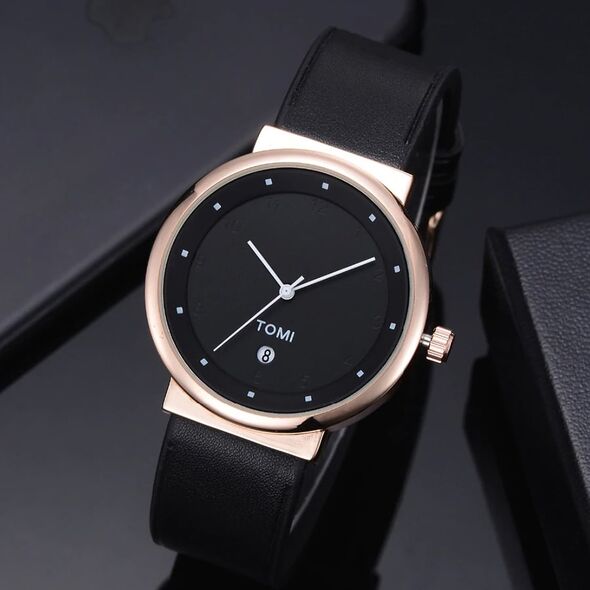 Ανδρικό Ρολόι TOMI - Leather Casual Analog Watch For Men Μαύρο - Λευκό