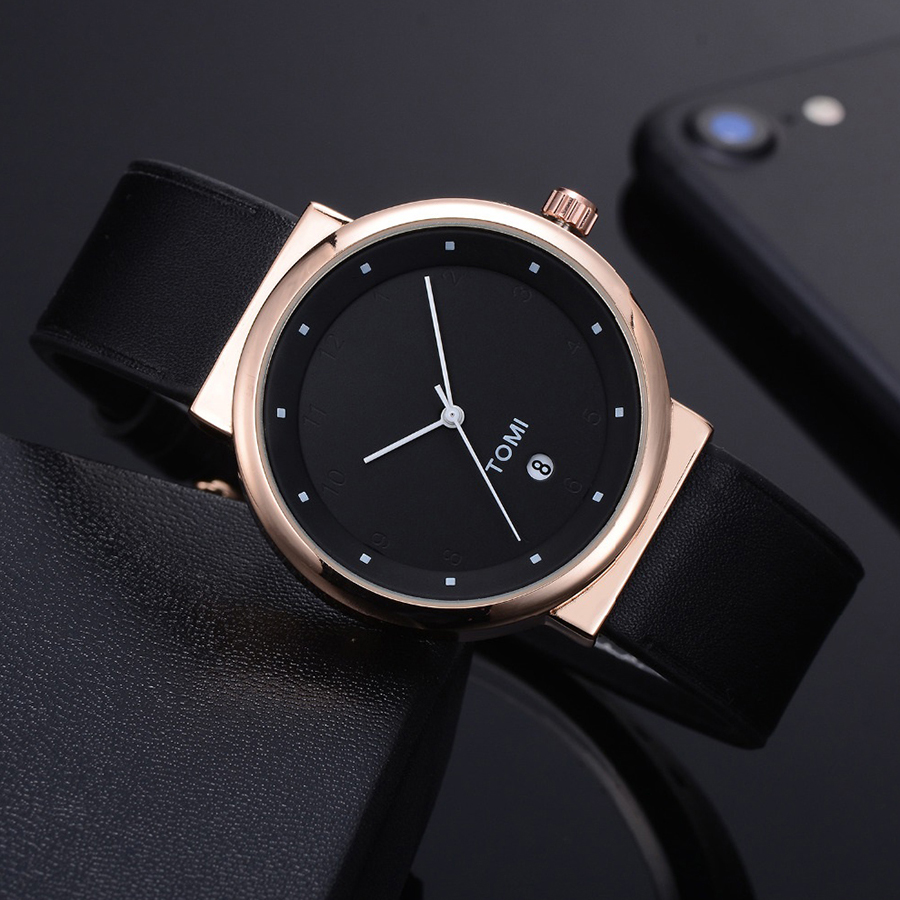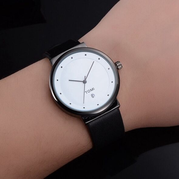 Ανδρικό Ρολόι TOMI - Leather Casual Analog Watch For Men Μαύρο - Λευκό