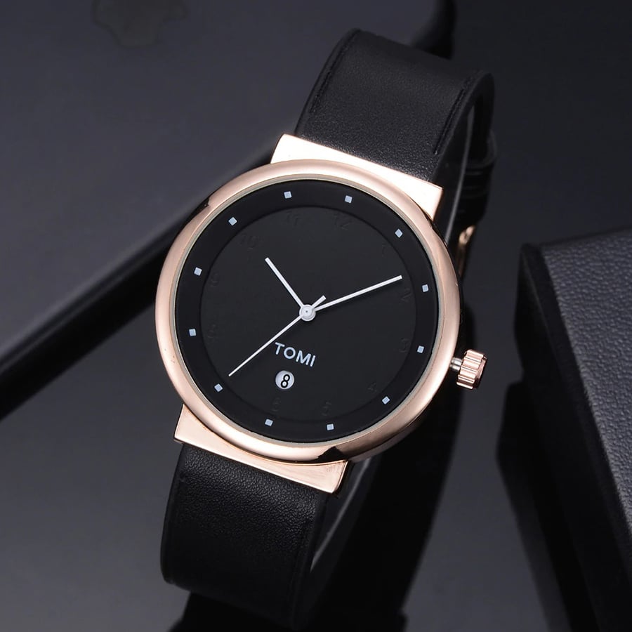 Ανδρικό Ρολόι TOMI - Leather Casual Analog Watch For Men Μαύρο