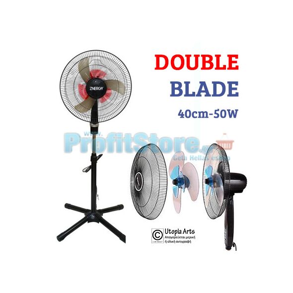 Ανεμιστήρας Ορθοστάτης Διπλής Φτερωτής 40cm 50W - Περιστρεφόμενος με Ρυθμιζόμενο Ύψος & 3 Ταχύτητες - CROWN FS-1630 Double Blade