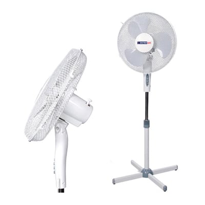 Ανεμιστήρας Ορθοστάτης, διαμέτρου 40cm, ισχύος 45W, 3 ταχυτήτων, περιστρεφόμενος, με ρυθμιζόμενο ύψος και κλίση, δικτυωτό προστατευτικό πλέγμα που αφαιρείται για εύκολο καθάρισμα, σε μοντέρνο σχέδιο και χρώμα Λευκό