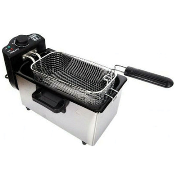 Μια κλασσική ανοξείδωτη φριτέζα λαδιού με αποσπώμενο κάδο χωρητικότητας 3.5L και ρυθμιζόμενο θερμοστάτη.