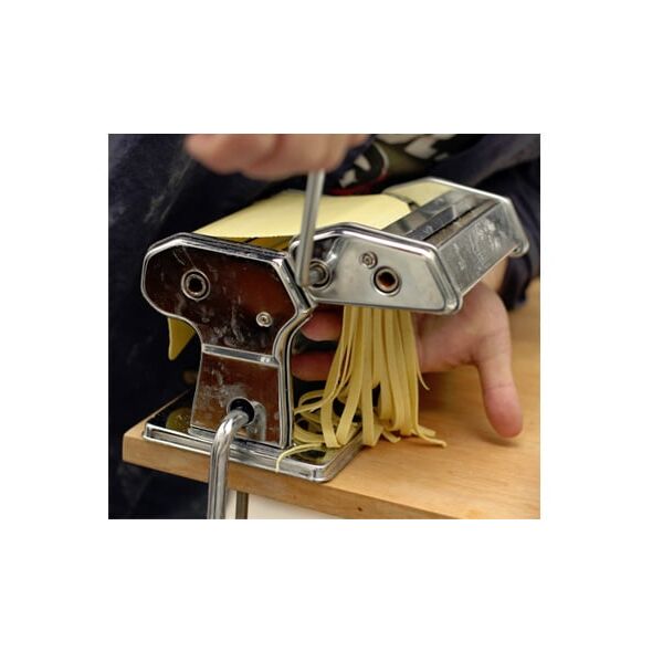 Ανοξείδωτη μηχανή κατασκευής ζυμαρικών, στιβαρή κατασκευή σταθερή και ανθεκτική. Εύκολη στη χρήση, φτιάχνετε την ζύμη την περνάτε στην ειδική υποδοχή και βγαίνει λεπτό φύλο, μετά παίρνετε το φύλο και το τοποθετείτε στον κόπτη, επιλέγετε πως θέλετε να βγουν τα μακαρόνια σε μορφή σπαγγέτι ή σε μορφή λαζάνια, και τελειώσ