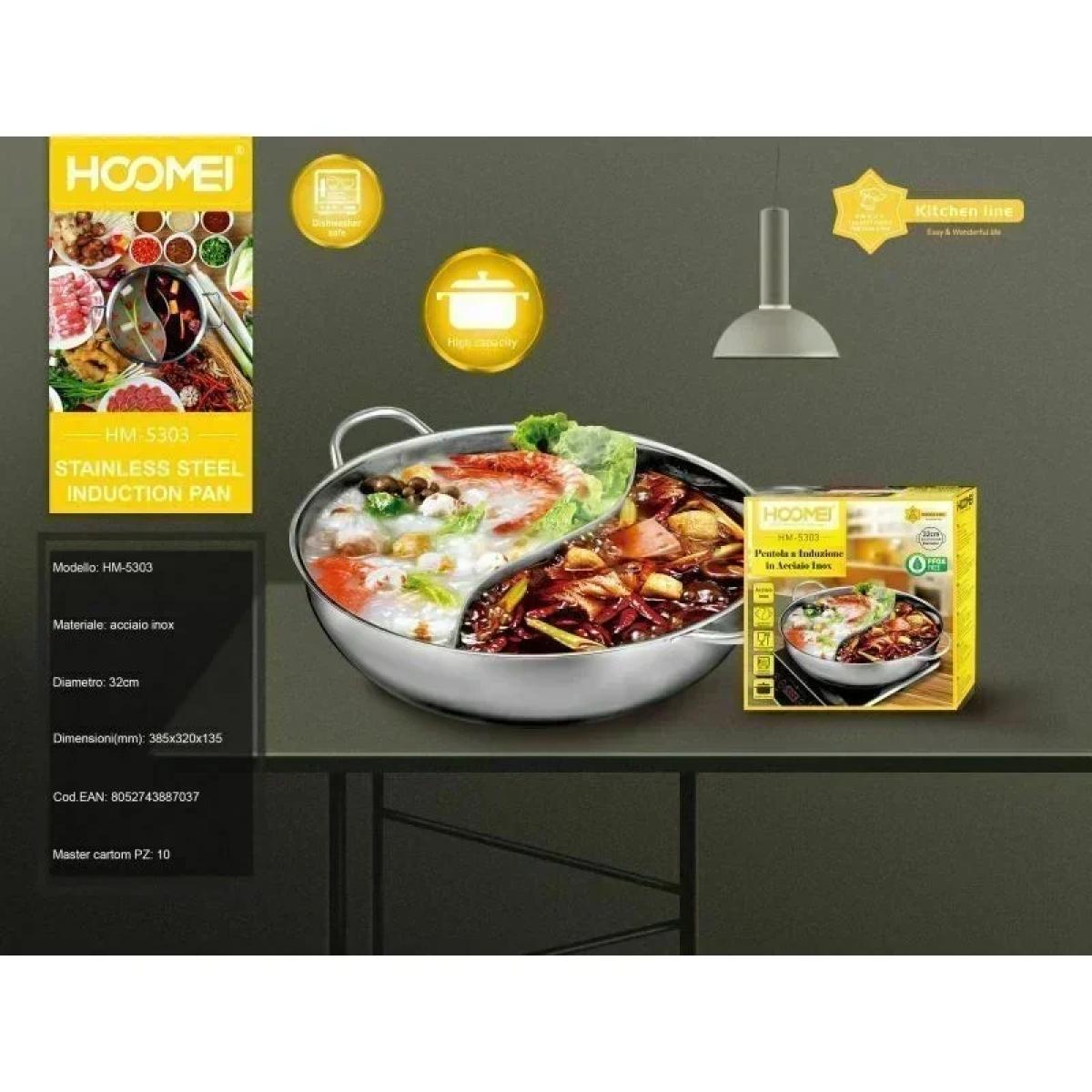 Ανοξείδωτο Επαγωγικό Τηγάνι με Γυάλινο Καπάκι, Πλαϊνές Λαβές και Εσωτερικό Διαχωριστικό S 32cm HOOMEI HM-5303  Ανοξείδωτο Επαγωγικό Τηγάνι με Γυάλινο Καπάκι, Πλαϊνές Λαβές και Εσωτερικό Διαχωριστικό S 32cm HOOMEI HM-5303