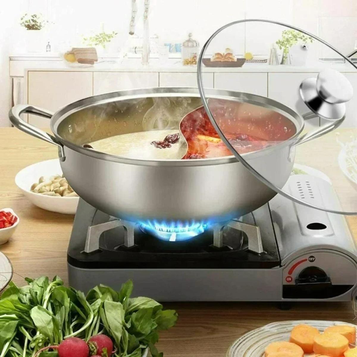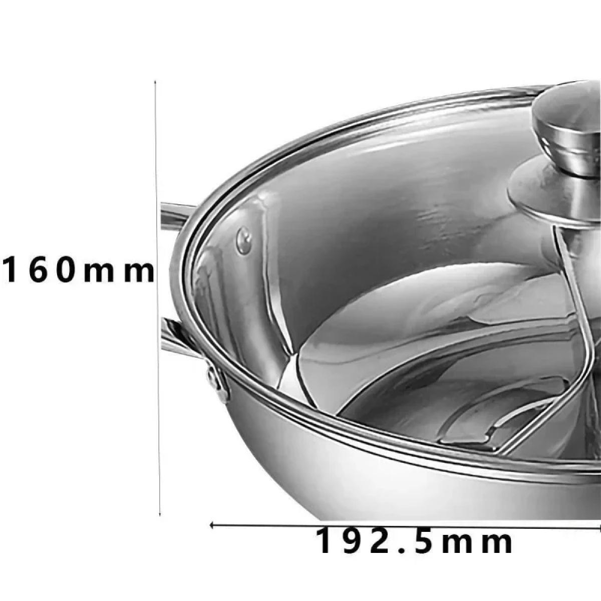 Ανοξείδωτο επαγωγικό τηγάνι 32 cm με εσωτερικό διαχωριστικό για ταυτόχρονο μαγείρεμα δύο φαγητών χωρίς ανάμειξη. Κατάλληλο για όλες τις εστίες, με γυάλινο καπάκι, ανθεκτική κατασκευή και εύκολο καθαρισμό για καθημερινή χρήση.