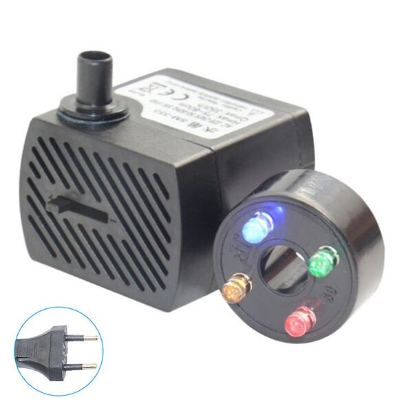 Ανταλλακτική βυθιζόμενη αντλία με πολύχρωμο Φωτισμό 4x Led για Διακοσμητικά Συντριβάνια Feng Shui με Τρεχούμενο Νερό.