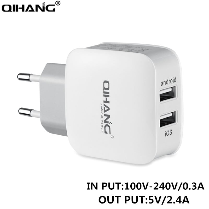 Αντάπτορας Φορτιστής Ρεύματος QIHANG 2.4 A με 2 Θύρες USB - Travel USB Charger