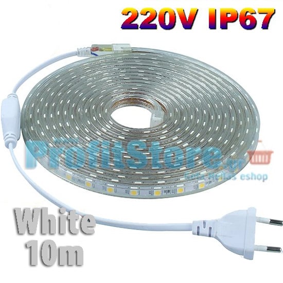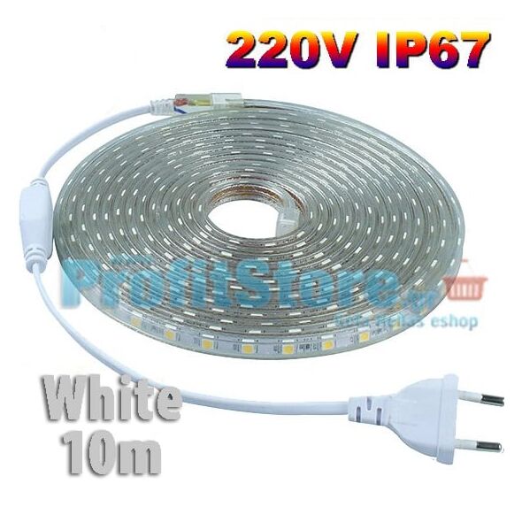 Πλήρες Σετ 10 μέτρων SMD LED Λευκή 220V IP67 Αδιάβροχης Ταινίας Heavy Duty με τροφοδοτικό & controller.