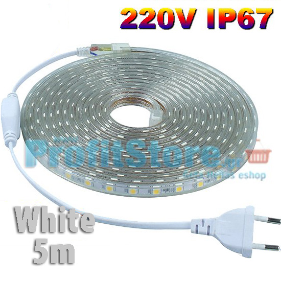 Πλήρες Σετ 5 μέτρων SMD nLED Λευκή 220V IP67 Αδιάβροχης Ταινίας Heavy Duty με τροφοδοτικό & controller.