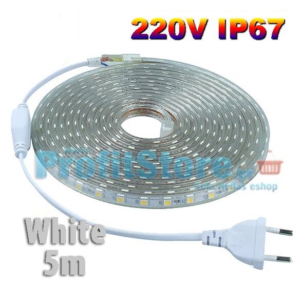Πλήρες Σετ 5 μέτρων SMD nLED Λευκή 220V IP67 Αδιάβροχης Ταινίας Heavy Duty με τροφοδοτικό & controller.